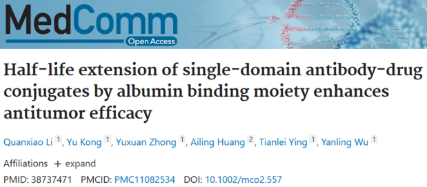 复旦大学应天雷/吴艳玲团队报道延长半衰期的新型全人源单域抗体偶联药物