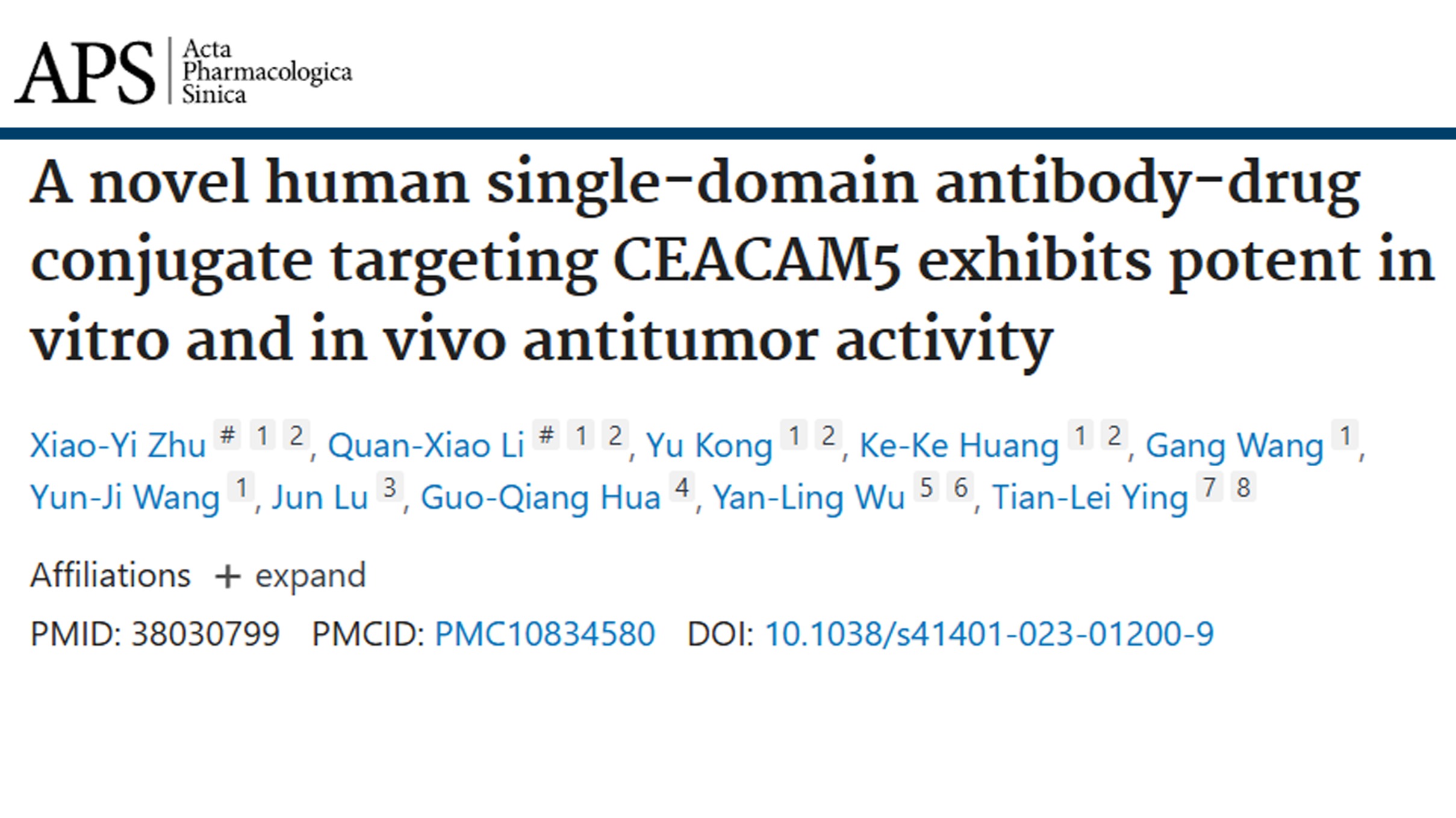 复旦大学应天雷/吴艳玲团队报道靶向CEACAM5的抗肿瘤新型全人源单域抗体偶联药物