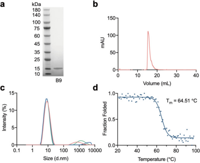 图1. UdAb B9的生物物理特性