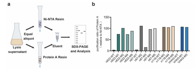 图3. 测试的单域抗体成功获得了通过Protein A亲和层析高效纯化的新功能